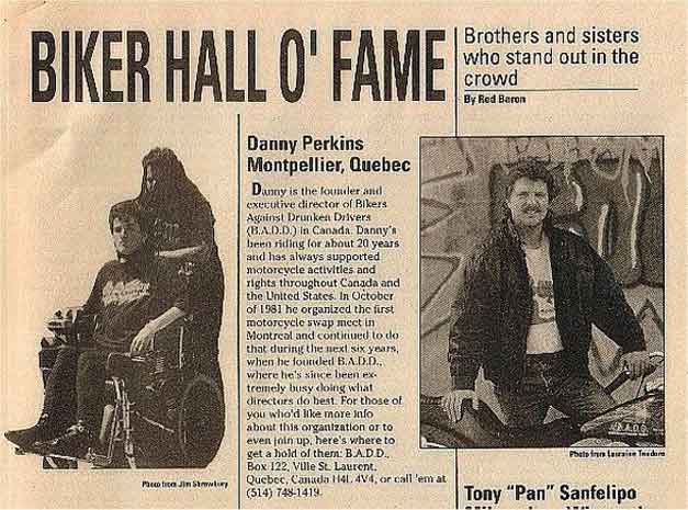 BADD was established after 2 tragic crashes occurred to the Perkins family in just a few years. Oct 25th 1973 Kim was out with some friends on a ride in the country when a Mack truck hit him head on while negotiating a tight curve on a winding road up north from Montreal. Although they did their best getting him to the hospital, he died a few days later from extreme internal injuries. The truck driver was drunk. Five years later in the spring of 1978, Danny Perkins had just finished rebuilding his 1970 BSA 650 lightning all winter chroming every part that could come off and spending every cent and minute he had on the bike.While hitting 4th gear heading on a narrow road in the suburbs a drunk taxi driver swerved over and hit Danny head on at about 60 miles an hour.